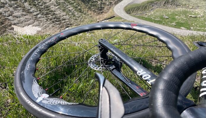 TestAfter 10 days in the Stelvio Park during the GF Stelvio Santini, these wheels excel on legendary climbs like the Mortirolo (12 km at 12%) and the Stelvio (25 km at 7%). Combined with Pirelli P Zero TT tires, they outperform high-end models like the Enve 2.3, with remarkable responsiveness and comfort. Be careful, we are in a comparison with exclusive wheels designed for climbing. As said above, the perfect wheel does not exist, but here on this VDZ pair we have an excellent compromise, whether on the flat, on passes, or downhill.