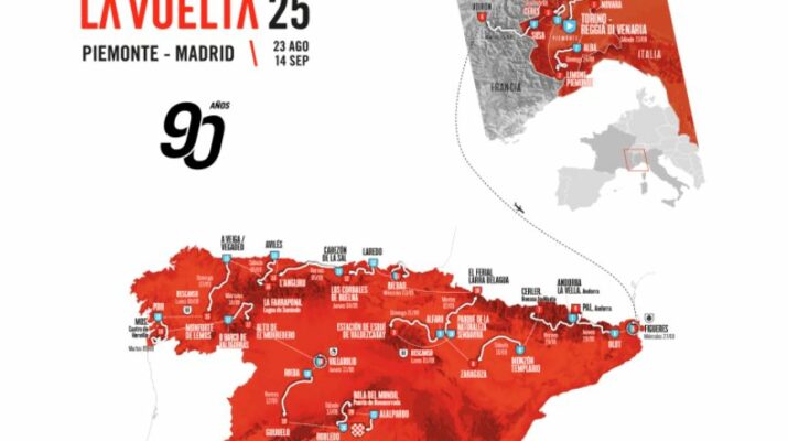 The 80th edition of the Tour of Spain takes place from Saturday, August 23 to Sunday, September 14, 2025, over 21 stages and a total distance of 3 km.The organizers have not skimped on the difficulties. After starting in Italy in Piedmont and crossing into France via the Col du Lautaret and Montgenèvre, before finishing in Voiron, the riders will return to the northern part of Spain where the rest of the race will be concentrated, crossing the Pyrenees, Asturias, Galicia and the Basque Country. The Angliru, Valdezcaray and Bola del Mundo are on the program for a race with a total of ten summit finishes, including 5 high-altitude stages.tagand 6 on average mytagTwo time trials, one team and one individual, are also planned. To follow the race, find the maps, profiles and TV broadcast times of the 80th edition of the Tour of Spain.