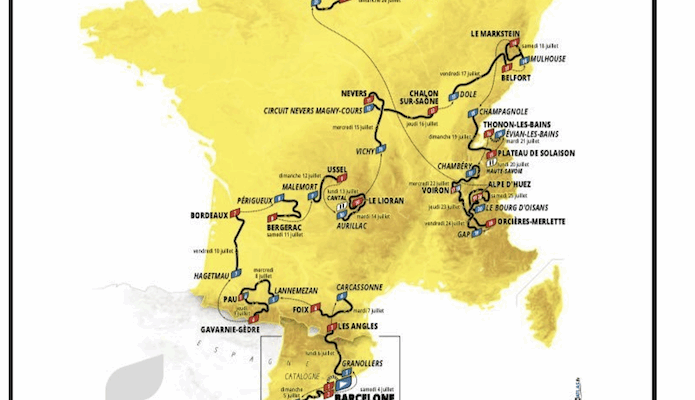 The route of the 2026 Tour de France has just been unveiled, as it is every year, at the Palais des Congrès in Paris. The program includes 3333 km, 21 stages, and more than